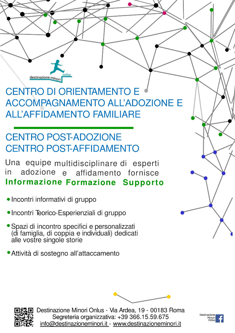 L'Associazione ha un CENTRO ESPERTO e DEDICATO in cui una equipe multidisciplinare di esperti in adozione e affidamento fornisce Informazione Formazione per le coppie che si avvicinano all'adozione e per le persone/famiglie che si avvicinano all'affidamento familiare.Accompagnamento e sostegno specialistico durante il percorso di preparazione all'adozione e all'affidamento familiare.Si effettuano inoltre percorsi di informazione e sostegno alle coppie che hanno già ottenuto l'idoneità ad adottare o hanno completato i corsi di formazione per l'affidamento familiare, per continuare a riempire di significati e di riflessioni il periodo "in attesa" della proposta adottiva od affidataria, per non finire di scoprire le risorse individuali e di coppia fondamentali per poi essere genitori adottivi od affidatari. Le attività comprendono: